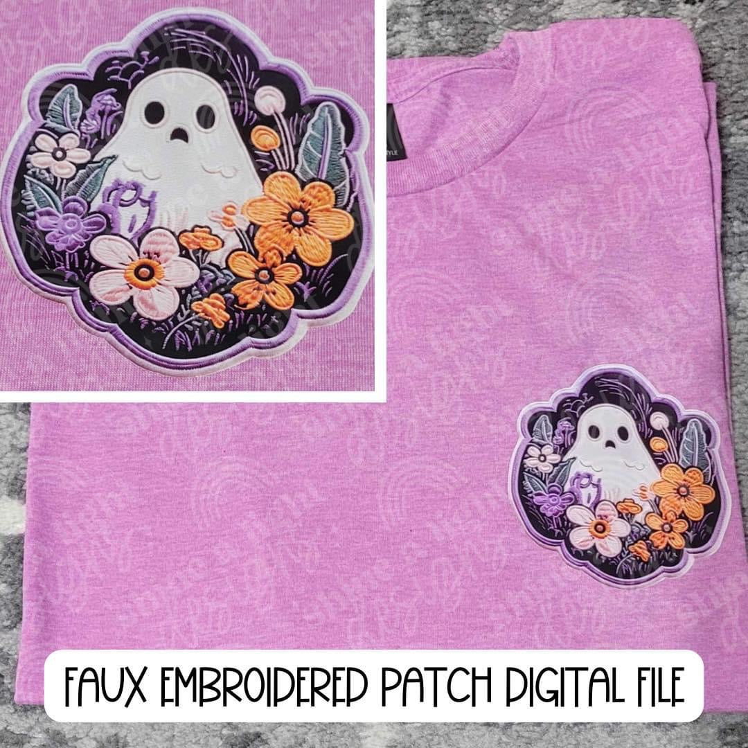 Ghost w/Flowers Pocket Tee Faux Embroidery