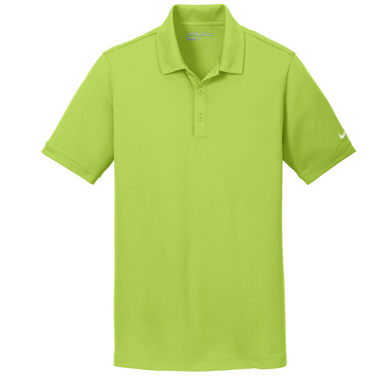 buttons and open hem sleeves. Three-button placket. The contrast Swoosh design trademark is embroidered on the left sleeve.Made of 4.7-ounce, 100% polyester pique Dri-FIT fabric. Modern fit is slightly tailored through the chest, arms and waist.